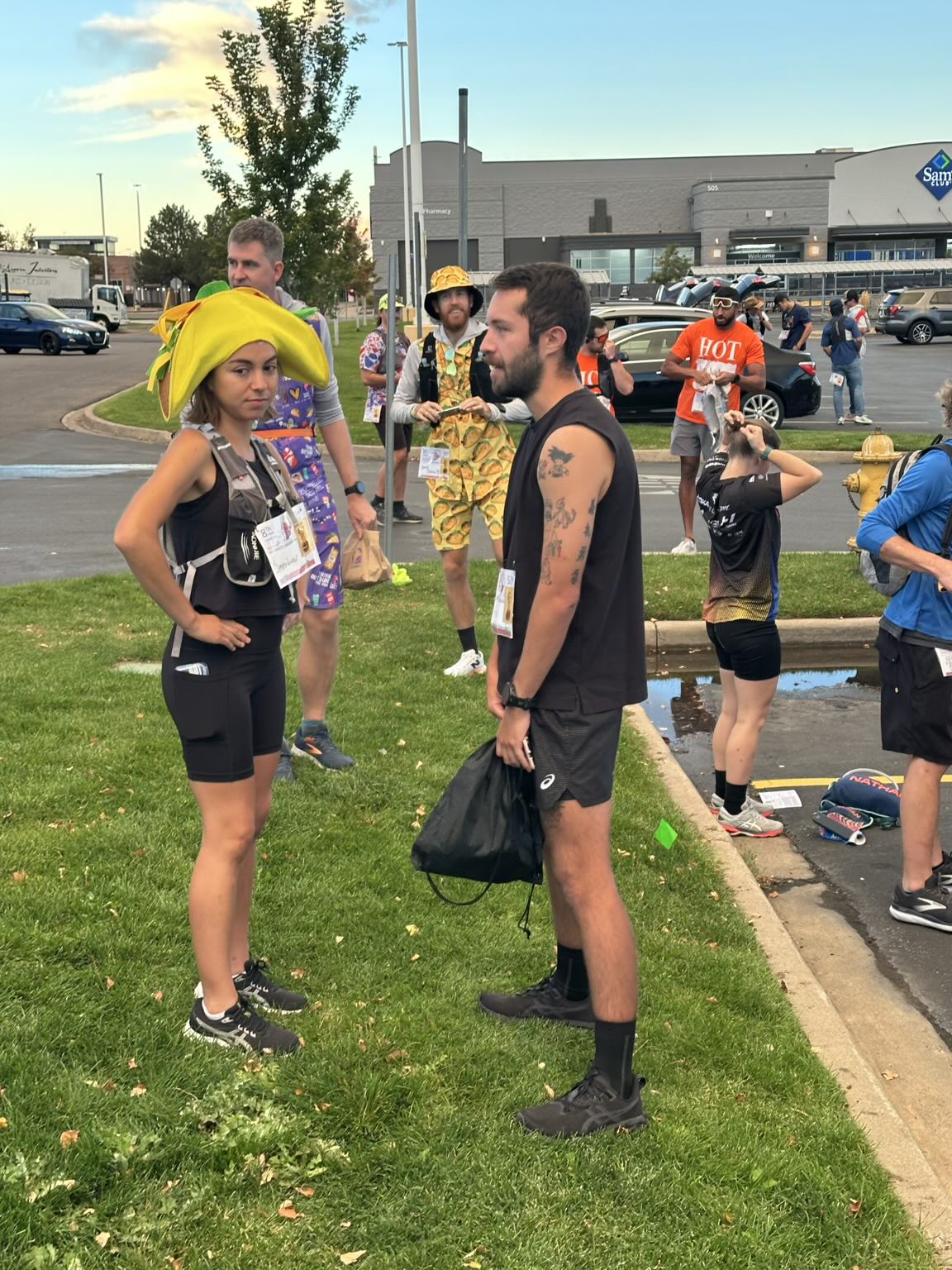Looking around, I realized I was definitely one of the oldest participants in the crowd. Most runners looked like they were in their 20s, many dressed in costumes or Taco Bell-themed outfits. A few wore hot sauce packet hats or taco costumes; others looked ready for a wedding—or a rave.