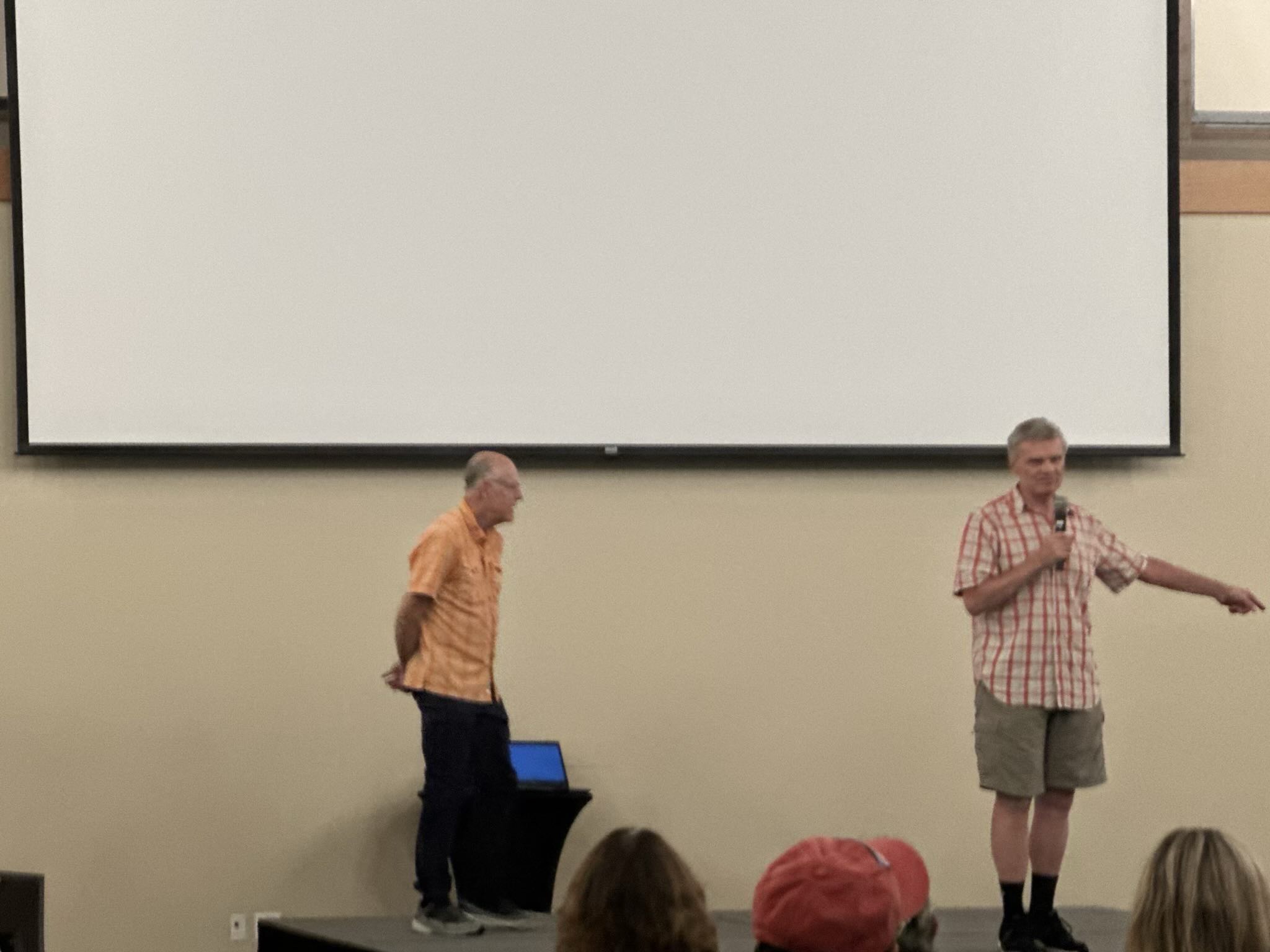 Andrea and I arrived at the Grand Junction Convention Center about fifteen minutes before the event began. Even then, it was obvious this would be a well-attended evening. Hundreds of people were already seated or filing in, many of them cyclists in town to ride the Tour of the Moon the following day.