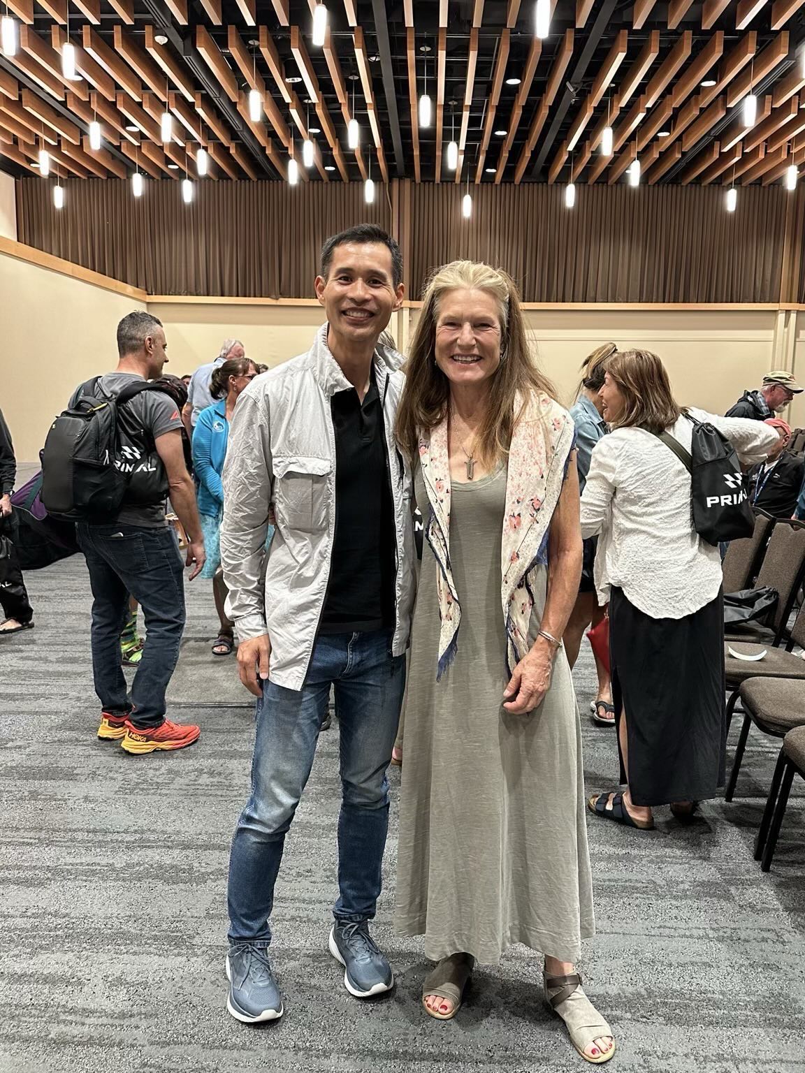 Once we found our seats, I immediately spotted Bob Shaver. I walked over to introduce myself, and within moments he introduced me to Davis Phinney. As someone who grew up reading about Davis in Bicycling Magazine in the late 1980s and early 1990s, meeting him in person—some thirty-five years later—was genuinely surreal. Despite living with Parkinson’s disease, he was sharp, engaged, and warm, very much the gracious champion he has always been known as.
