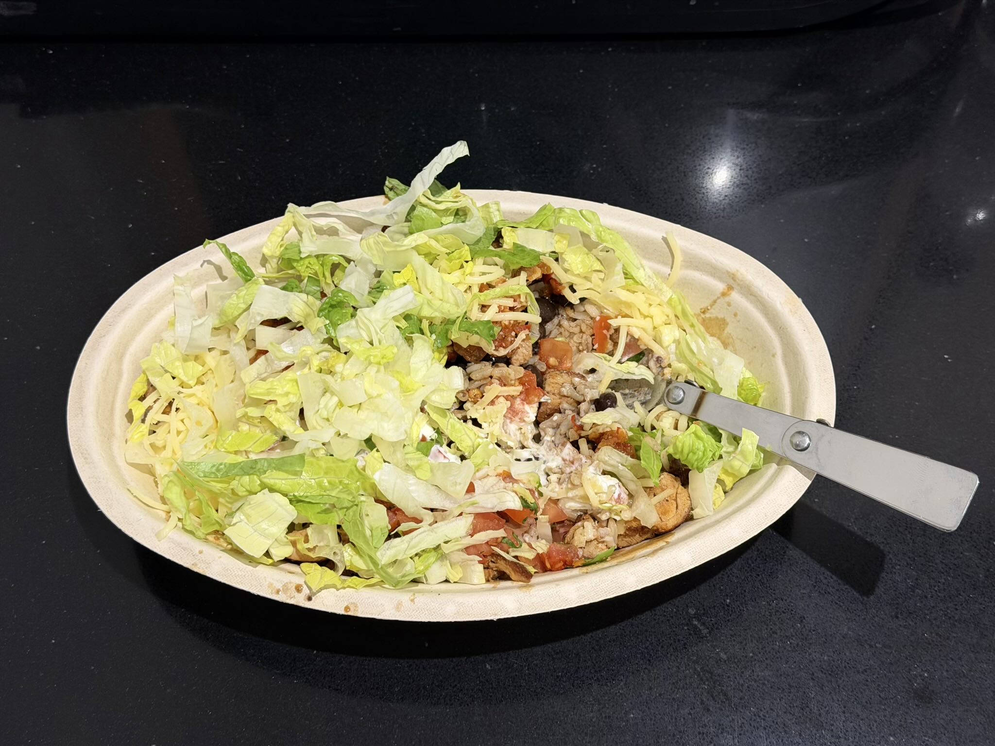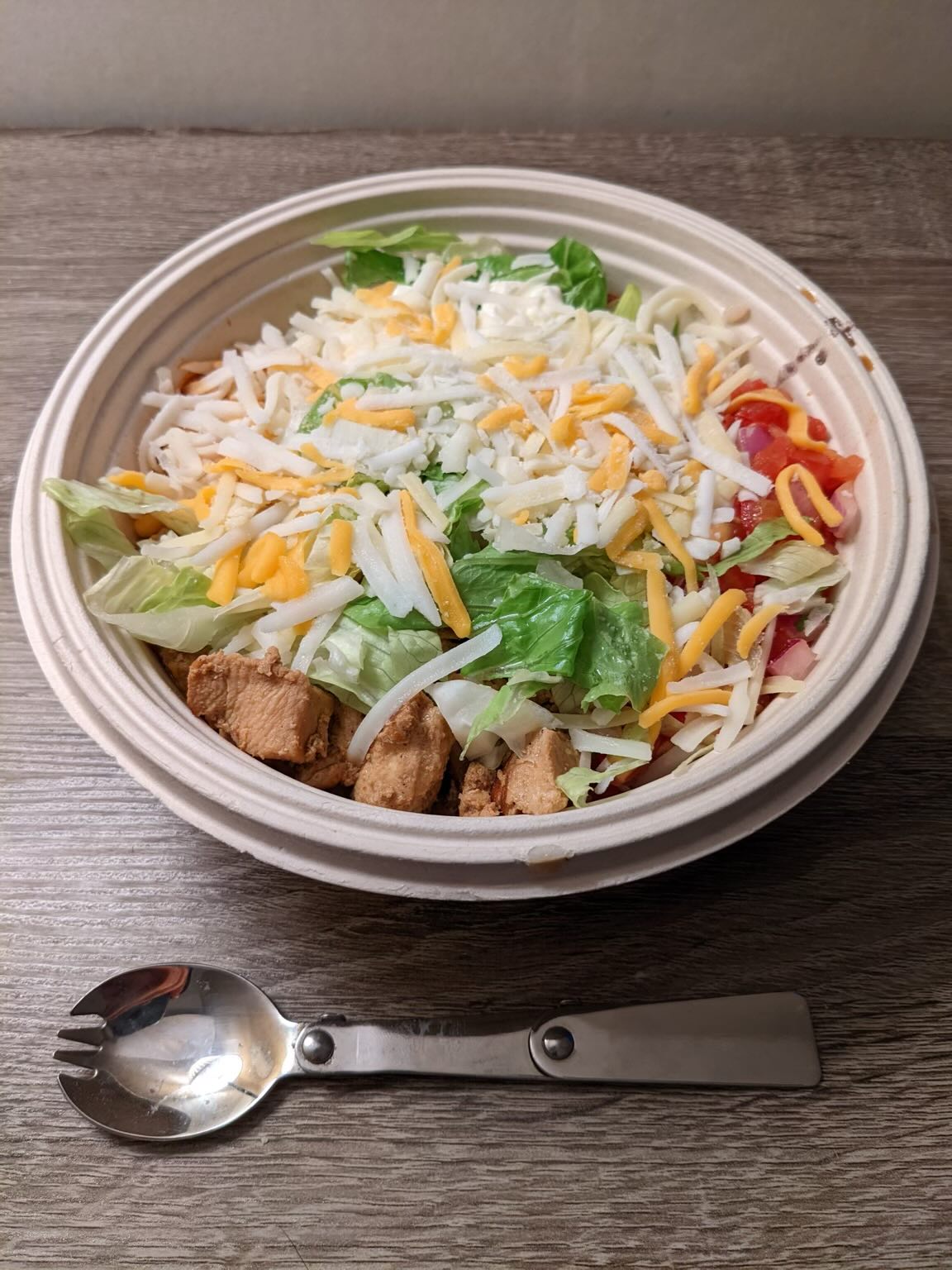 Another thing I appreciate is the minimal packaging waste. If I say it’s “for here,” the burrito bowl arrives in a compostable container with no aluminum lid. I usually bring my own foldable metal spoon, which feels like a tiny personal victory against single-use cutlery, along with my own water bottle.