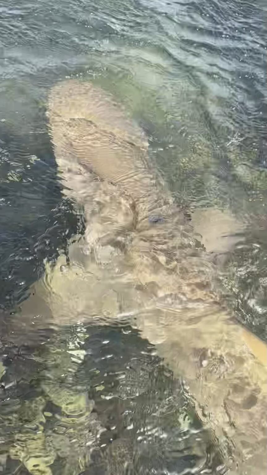 Baby lemon sharks are about as frightening as a retriever puppy in a swimming pool. They max out at roughly half a meter to a meter here, dark-gray and compact, and they swim through your legs with the aimless curiosity of fish that have clearly never had reason to be afraid of anything.