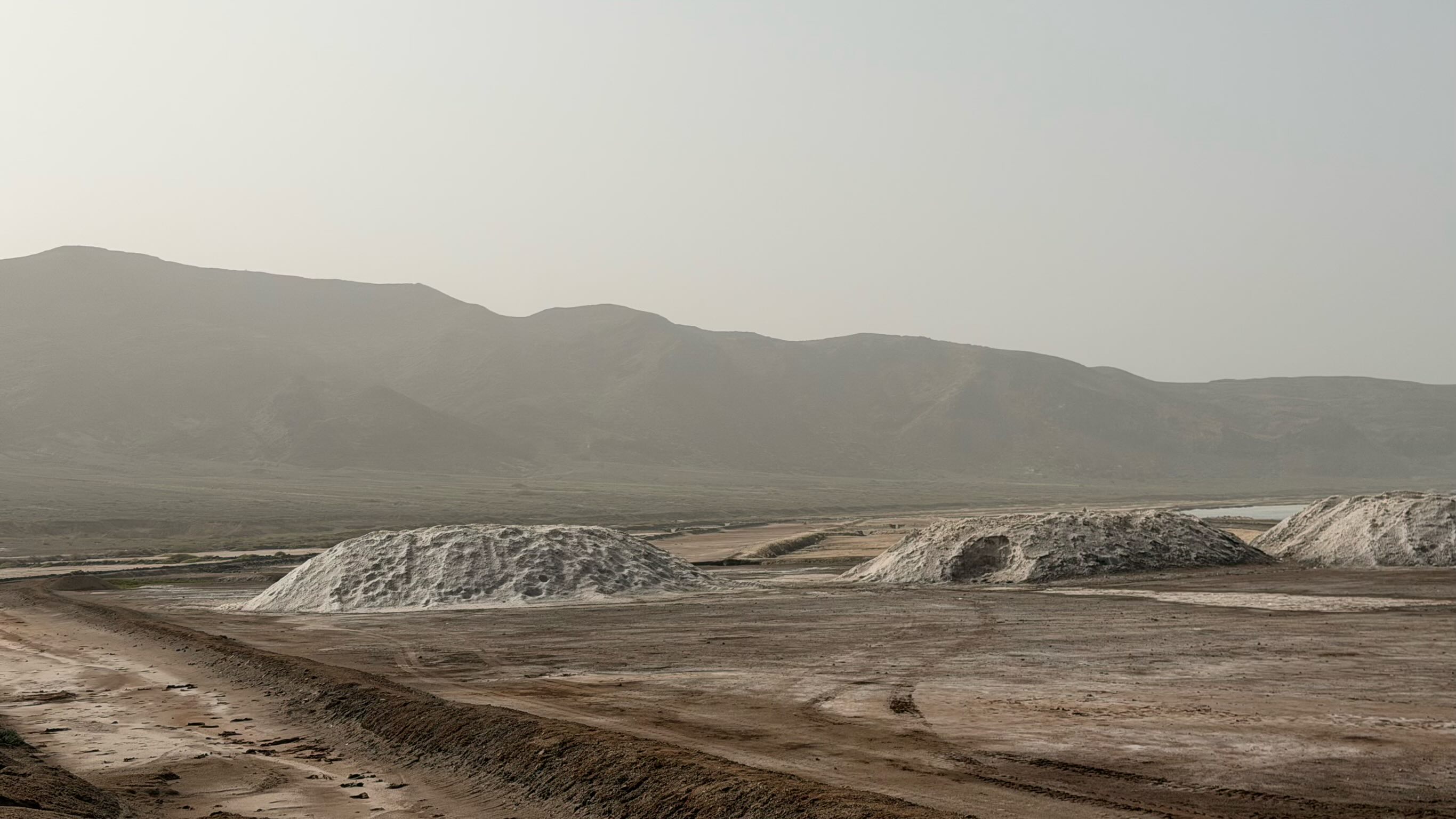 The final stop was Pedra de Lume, and it was unlike anything I have seen. Inside the crater of an extinct volcano in the island’s northeast, seawater seeps in through the porous rock from the ocean—despite the crater sitting visibly above sea level—and has been evaporating into salt for centuries. The salt pans that fill the crater floor are almost surreally beautiful: brilliant white and vivid pink against an impossibly blue sky, with snow-white salt mountains banked along the edges. The Portuguese once harvested this salt and shipped it all the way to Brazil.