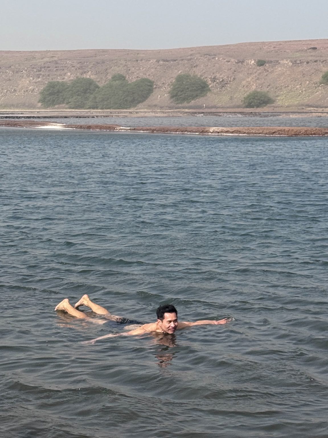 A small warning for anyone who follows me into the water: the salt will utterly annihilate your skin. Within two days, what I can only describe as eczema appeared on my arms and neck—the direct result of the extreme drying effect of the brine. Bring moisturizer. Bring lots of it. Bring it in advance. And wash off the salt as soon as you can.