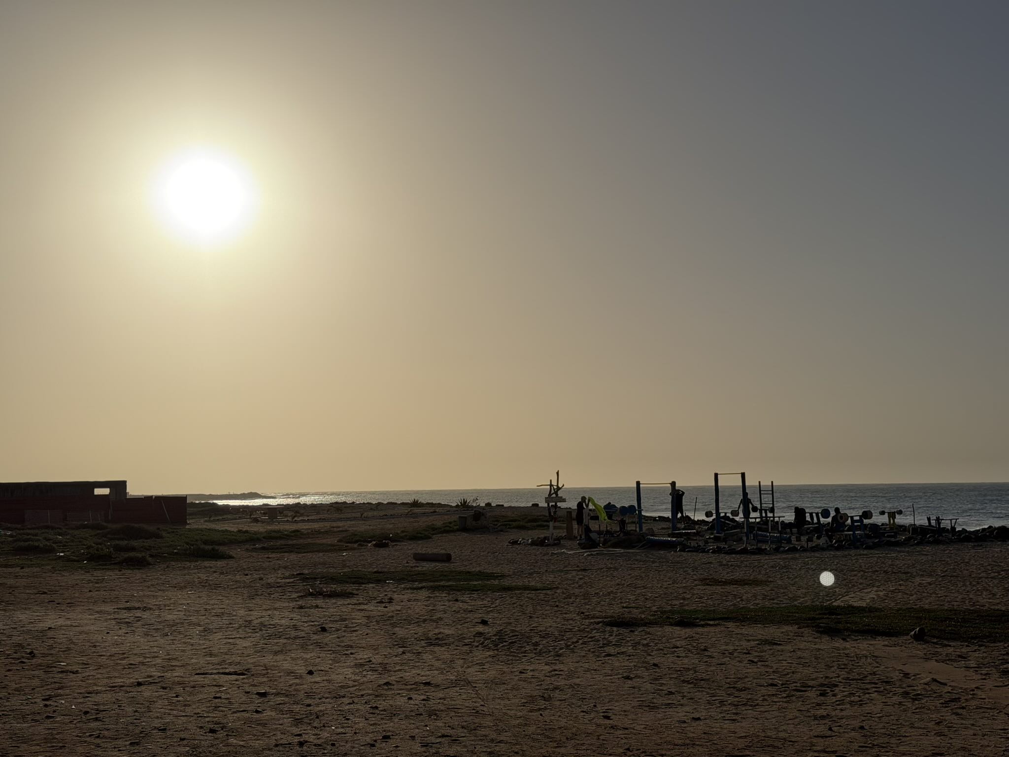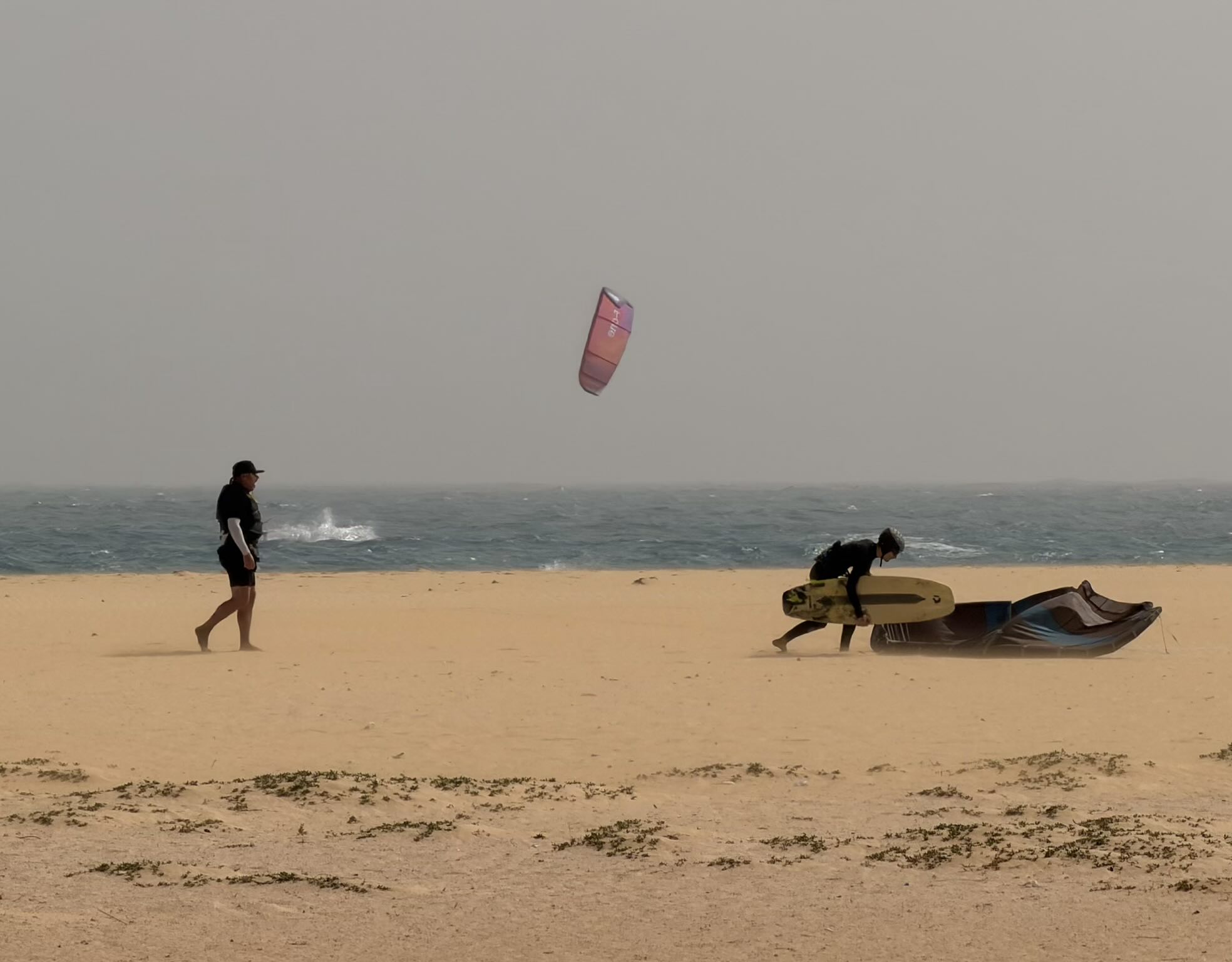 A 25-euro taxi ride from the small airport in Espargos deposited us at our hotel in Santa María, the main tourist hub in the south of the island. The drive, even in the dark, confirmed the island’s signature character: relentlessly flat, and windy enough that you half-expect the taxi driver to quote a fare for the crosswind correction. I would soon discover that the wind on Sal is not a weather event—it is a permanent resident. It blows 24 hours a day, seven days a week, 365 days a year. It is why Cabo Verde is one of the premier destinations on earth for wind- and kitesurfing. It is also why the island has essentially no trees. The ones that survive look like they’ve had a very bad decade.