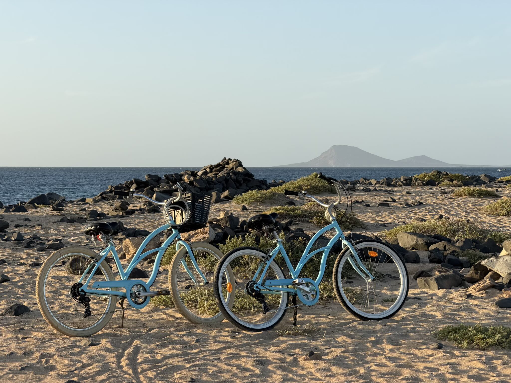 The bikes became an unexpected highlight of our stay. On our second afternoon at the Hilton, Andrea and I rode out for just over an hour along the coast, and for the first time on the trip, we got a clear view of Monte Leão—the “Sleeping Lion Mountain” we had tried and failed to see two days earlier through a thick haze of calima blown in from the Sahara.