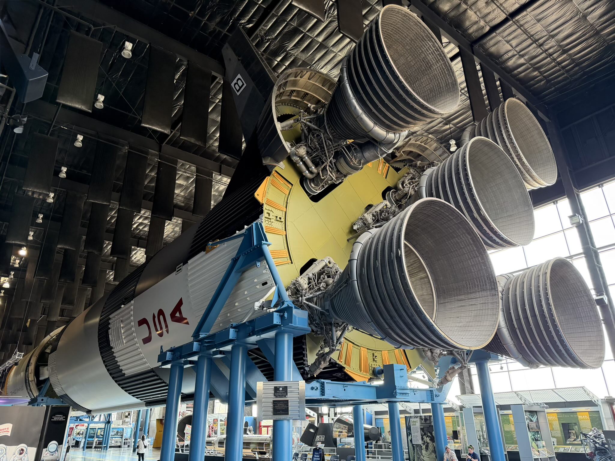 The Space Shuttle Pathfinder dominates the east side of the center. It is a full-scale mock-up built from wood and steel, constructed for fit-and-function testing before the real orbiters flew. When I first saw it, I was struck by how modest it looked in person—smaller than I had always imagined. I pulled out my phone and asked Gemini how much larger the actual shuttle was. It confirmed that this was indeed full-scale, which meant my mental model of the shuttle had simply been wrong for decades. In fact, a Boeing 747 dwarfs the Space Shuttle which—surprise!—is just a glider with a huge gas tank that’s (at least upon launch) attached to its belly. All those years of watching launches on television and I had apparently extrapolated the wrong dimensions from the footage.