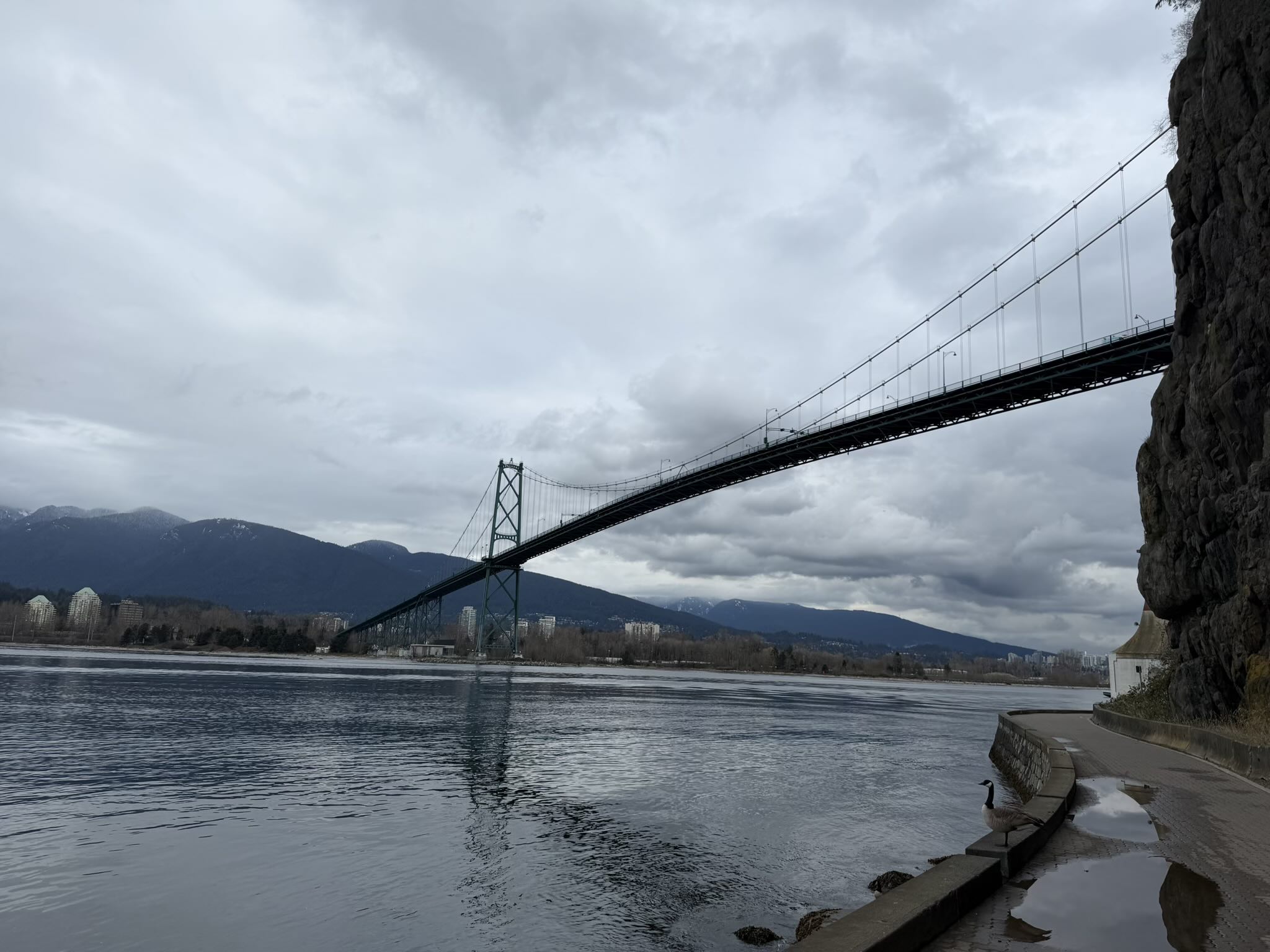 The views changed with every bend. The Vancouver skyline behind me, Burrard Inlet ahead, the Lions Gate Bridge materializing around one curve and the North Shore mountains floating above everything. Plenty of other people were out—runners, cyclists, e-bikers, people on electric standup scooters who had clearly found their preferred mode of transport and were not apologizing for it.