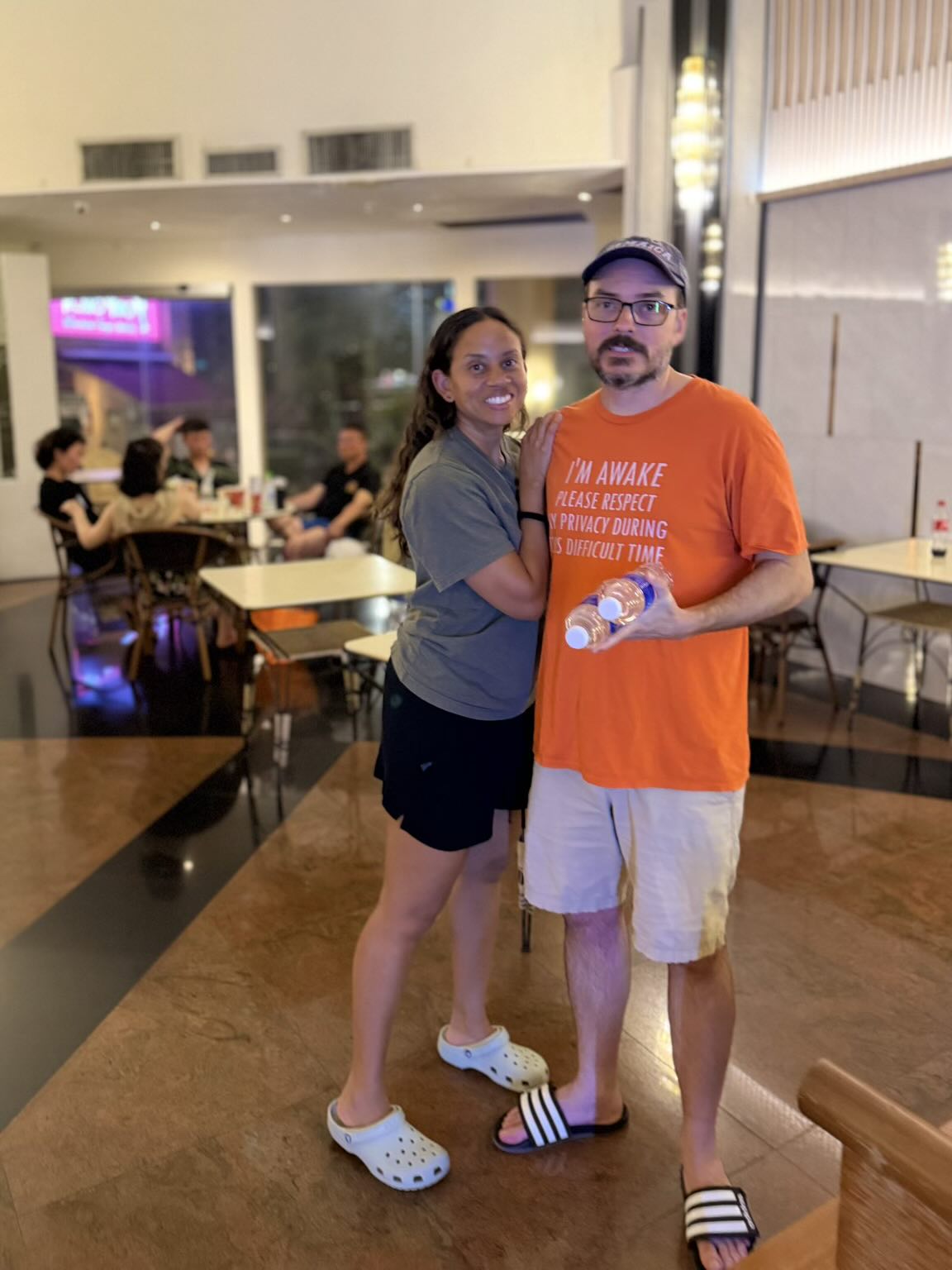 James and Leanne appeared at the hotel shortly after I checked in to say hello. They mercifully bore good humor about my extended journey.