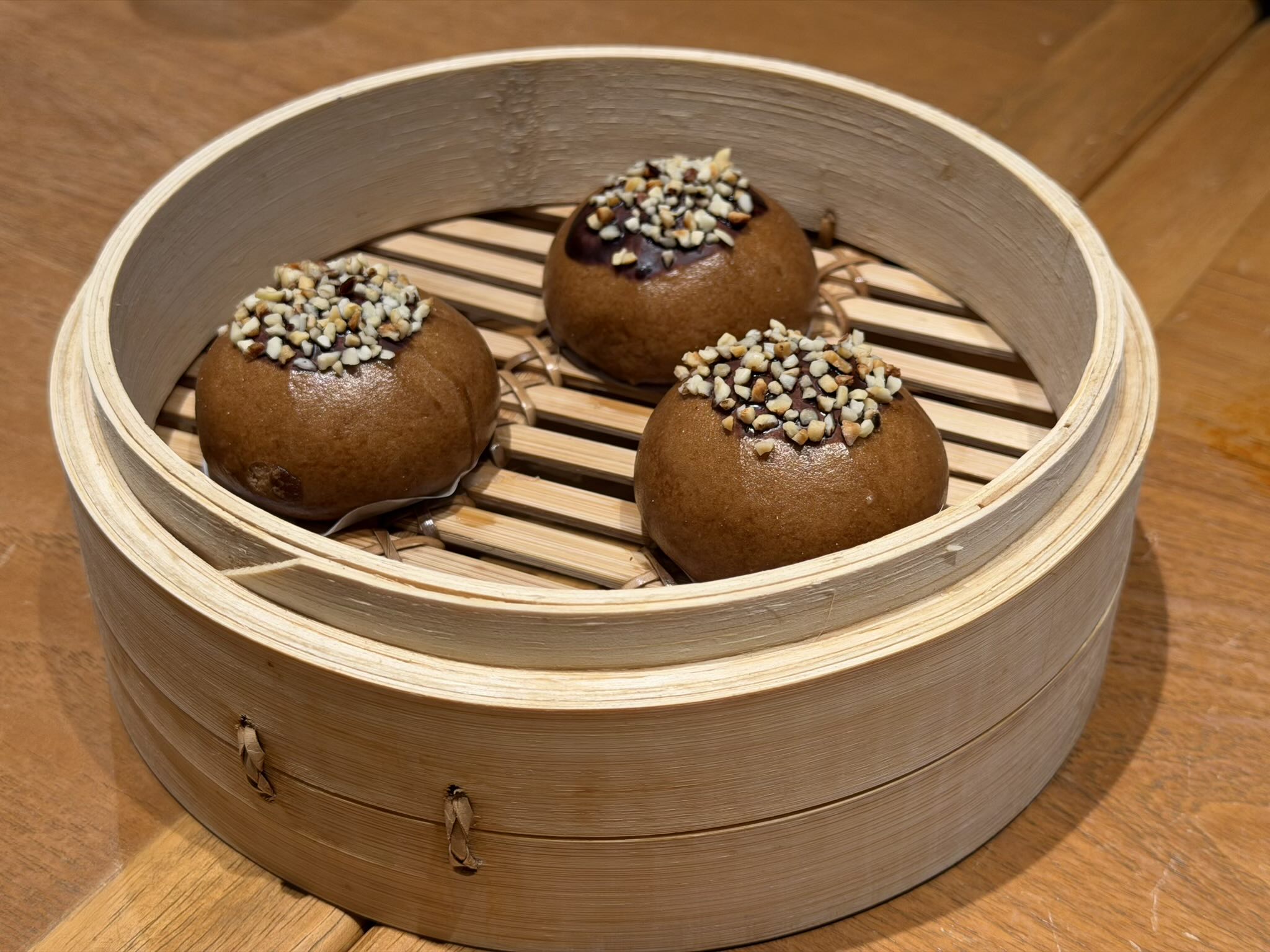 When Leanne joined us afterward, the three of us went to Din Tai Fung for lunch. I had been talking up their world-famous xiao long bao (soup-filled dumplings), and James and Leanne were good enough to indulge me. We ordered chicken xiao long bao, shrimp dumplings, spinach with garlic, pork buns, sweet and sour pork, and hot jasmine tea, plus Easter cocoa wafer buns at a promotional SG$1 per person.